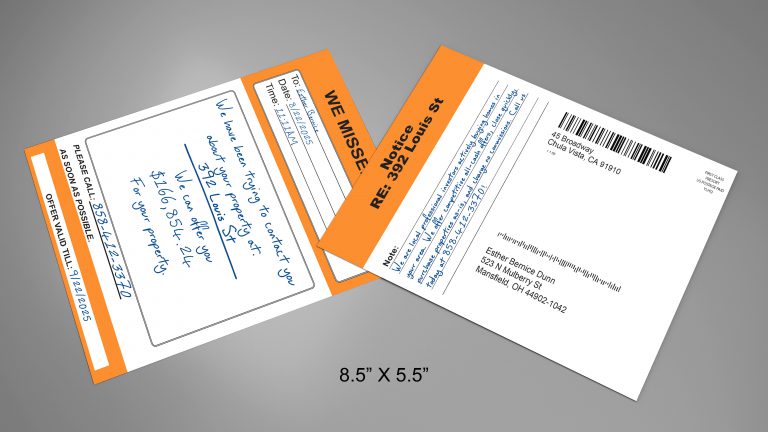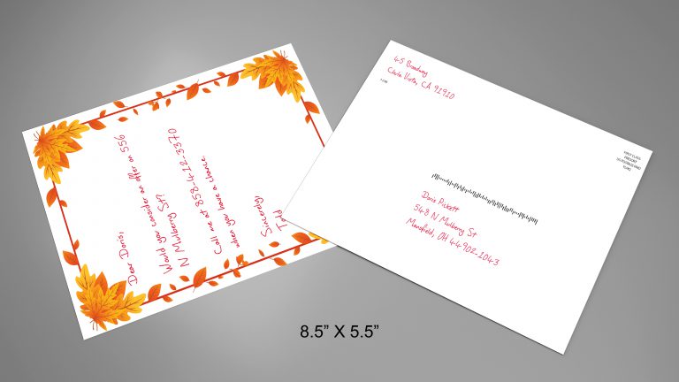 Custom message? Want your own message and layout? It takes a good amount of time to make it right. This is usually a one-time fee. We save your mail piece, small changes are always free.
