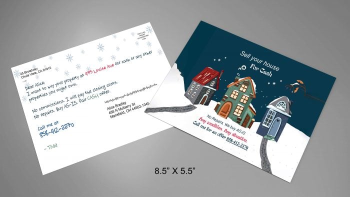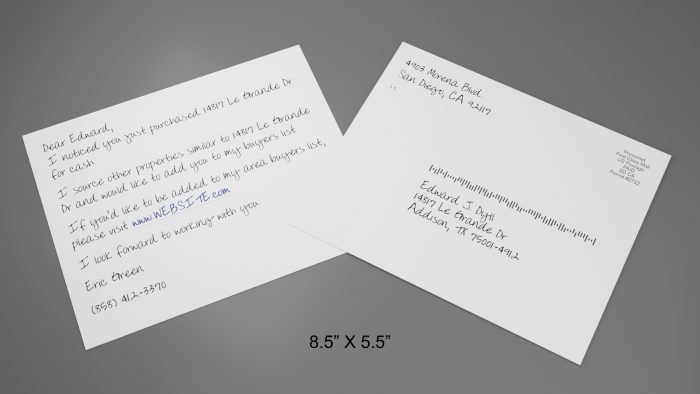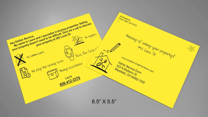 Custom message? Want your own message and layout? It takes a good amount of time to make it right. This is usually a one-time fee. We save your mail piece, small changes are always free.
