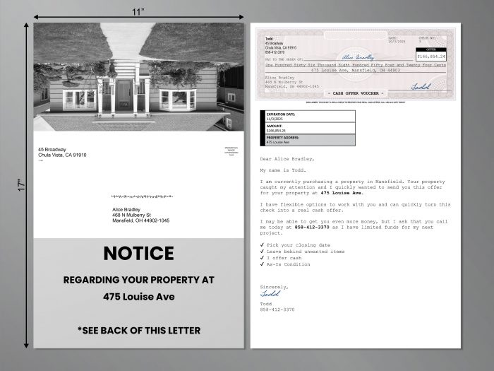 Often your only competitors, if any… are Investors that send letters, the postcards go in the trash.